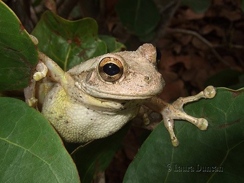 Osteopilus septentrionalis, commonly known as the Cuban tree frog, is an amphibian native to the Caribbean region of the Western Hemisphere. It is the largest treefrog of North America. They range in different sizes from 3 inches to 5.5 inches and vary in color from olive-brown, bronze, gray or grayish-white. Their toepads are much larger than those of other tree frogs and they will often have an orange-tint to their eyes.