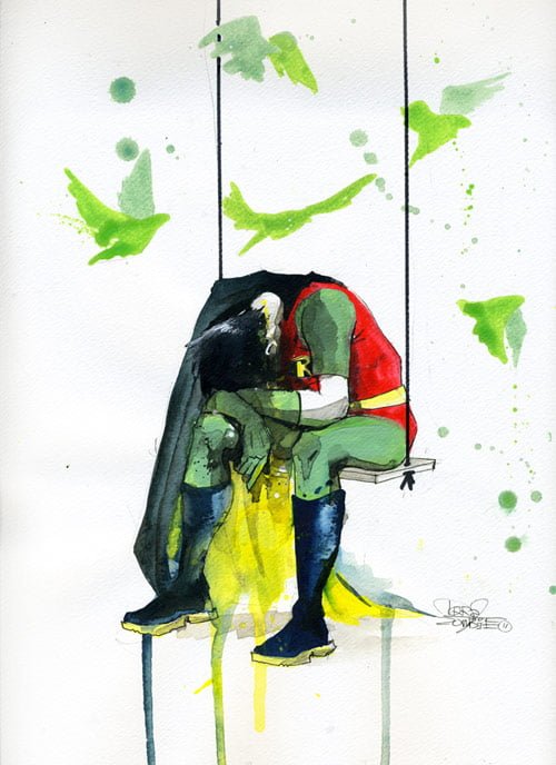 In this post we showcased depressive superheroes drawings by Lora Zombie. Lora is a young self-taught artist from Russia who has amassed a massive following of fans online over the past few years. Now she is breaking into the gallery scene and is branching far outside her native Russia.