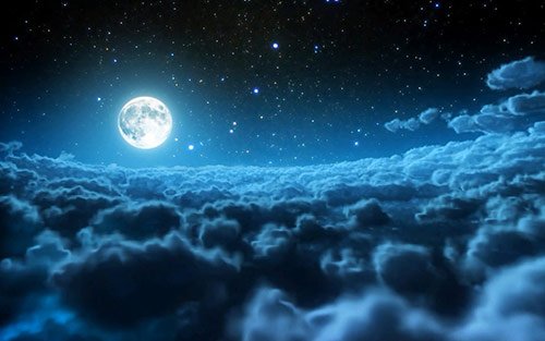 What a beautiful scenery wallpaper where a moon is hiding behind a tree.